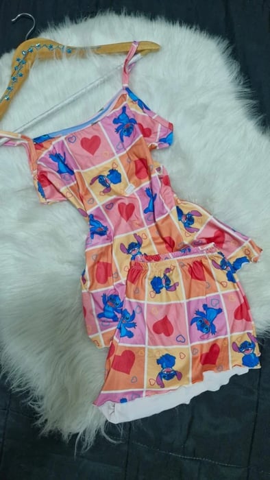 Pijama baby doll em suede personagens verão Tamanho P
